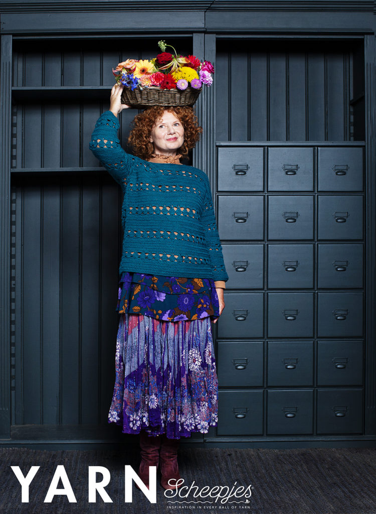 YARN 6 bookazine FOLK is the special Fall/Winter issue of the biannual Scheepjes bookazine and contains 17 modern crochet and knit patterns from designer from all over the world! There are all kinds of monochrome and multicoloured key projects: a very feminine lace cardigan, sleeveless knitted tunic, chunky shawl with adorable boho elements, unisex fair isle socks, a rich wrap with beautiful drape, gorgeous lace tunic dress, a modern bag with geometric pattern, the prettiest garland, cozy blankets, cute softies to cuddle, even a cheerful Christmas stocking… and my Eva sweater!