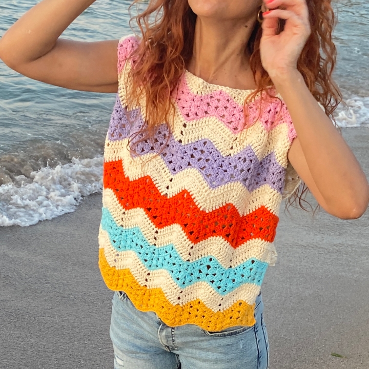 Granny Stripes Ripples sweater is 40% off Ravelry, Etsy, LoveCrochet and Ribblr thru Monday, Aug 16 2021! No coupon needed because the discount is applied already!